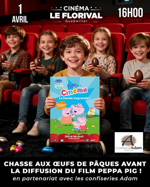 Avant la séance de Peppa Pig, les enfants pourront participer à une grande chasse aux œufs dans le cinéma !